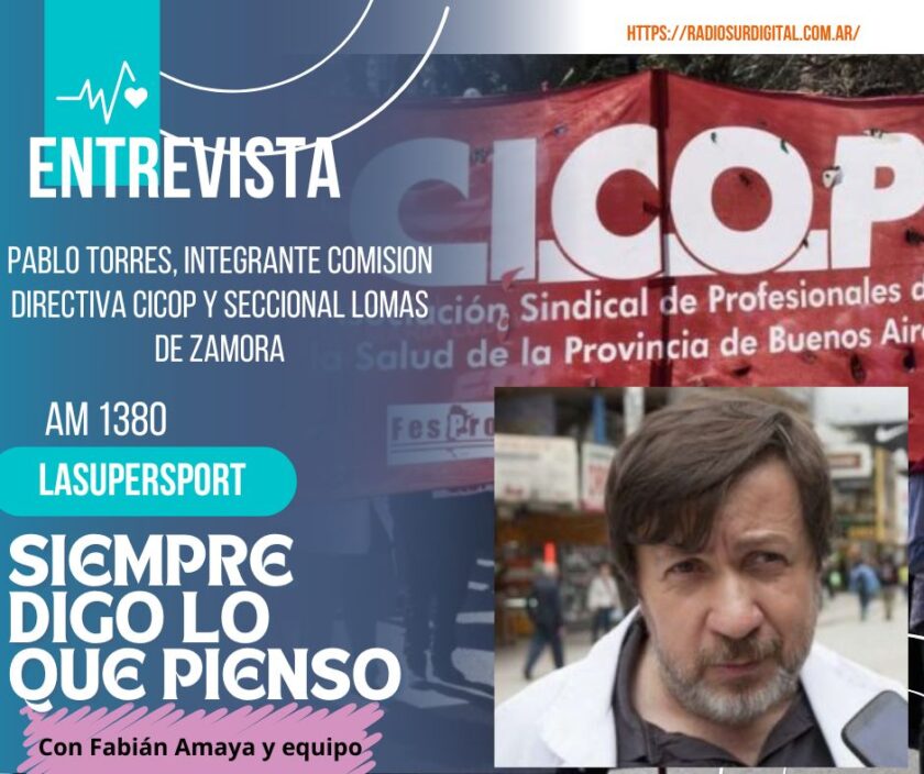 Pablo Torres, integrante de la Comisión Directiva de Cicop y de la seccional Lomas de Zamora, aseguró que hay «una ofensiva virulenta en todos los planos». Los trabajadores de la Salud, profesionales y diferentes organizaciones políticas, sindicales y sociales marcharán éste jueves en Defensa al derecho a la Salud, y en ésta entrevista realizada en AM 1380 programa «Siempre Digo lo que Pienso», Torres hace un análisis del sistema salud actual y las consecuencias de las políticas destructivas del gobierno libertario. Línea de tiempo de la entrevista Torres 1 01.40…