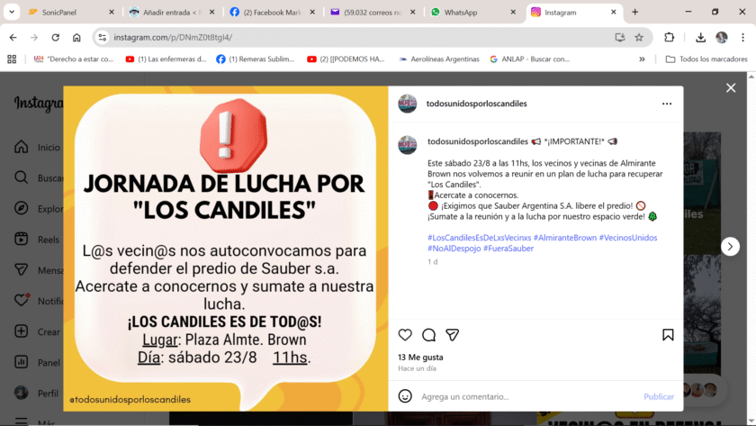 Unas 5 hectáreas de verde en Almirante Brown que conforman el predio Los Candiles está cerrado y tapado con tela en todo su perímetro. Los vecinos de pronto se enteraron que el lugar en donde paseaban, tomaban mate, o jugaban con sus hijos fue vendido a un precio irrisorio a la empresa SAUBER. Previo a ello el municipio puso un interventor para normalizar la Comisión Directiva del Centro Tradicionalista, que según denuncian los vecinos organizados, «jugó para la venta» del predio. Suponen que allí donde desde hace 35 años funciona…