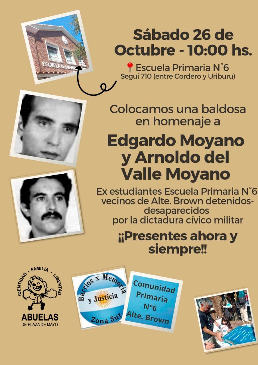 La cita será mañana 26 de octubre en Almirante Brown, la escuela número 6 (Seguí 710) y tendrá la colocación de la una baldosa. Juan Pablo dejó definciiones claras de lo que sucede ante la cuestión DDHH en Argentina, habló de su análisis personal y social ante lo que siente hoy frente al homenaje, y en especial sobre la reinvindicación -ya no sólo negoacionismo- que hace sobre el tema la ultra derecha del actual Gobierno. También refirió que la visibilización de la historia real de los 30 mil desparecidos fue gracias a todo el conjunto de luchadores de DDHH, Abuelas y Madres de Plaza de Mayo.