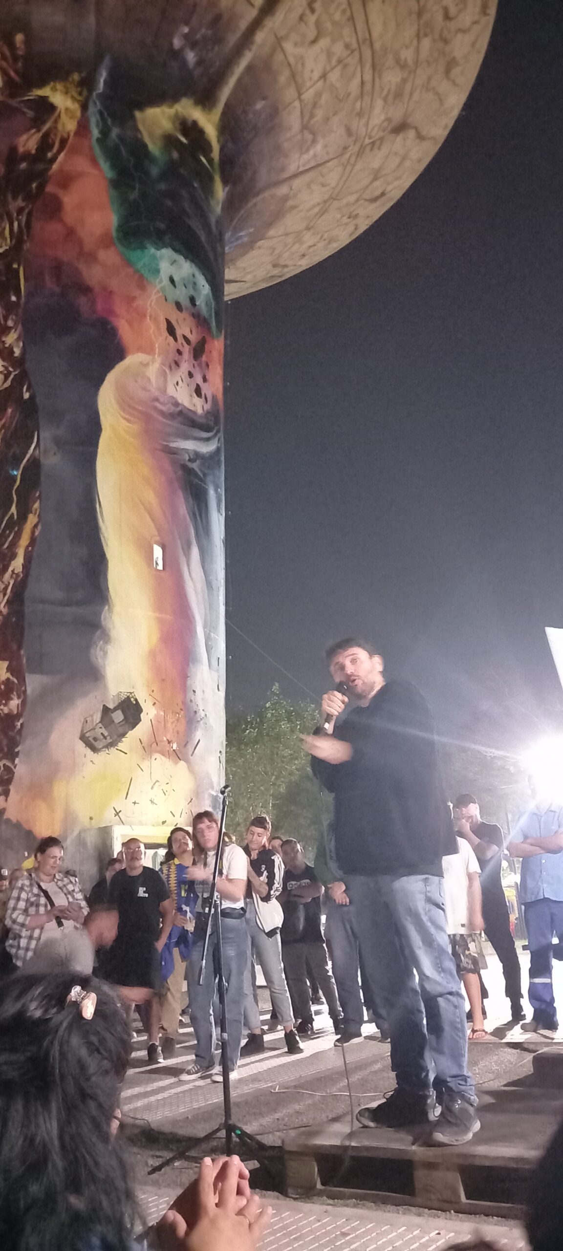 Debajo del tanque de agua histórico frente a la estación de trenes de Monte Grande (Esteban Echeverría, pcia de Buenos Aires) Juan Grabois en una actividad militante aseguró que hacer política partidaria, es un acto de amor al prójimo. Un discurso repleto de programas de trabajo, y orientación política: primero Combatir a Milei porque es el enemigo, y segundo generar proyectos simples para garantizar derechos sociales.